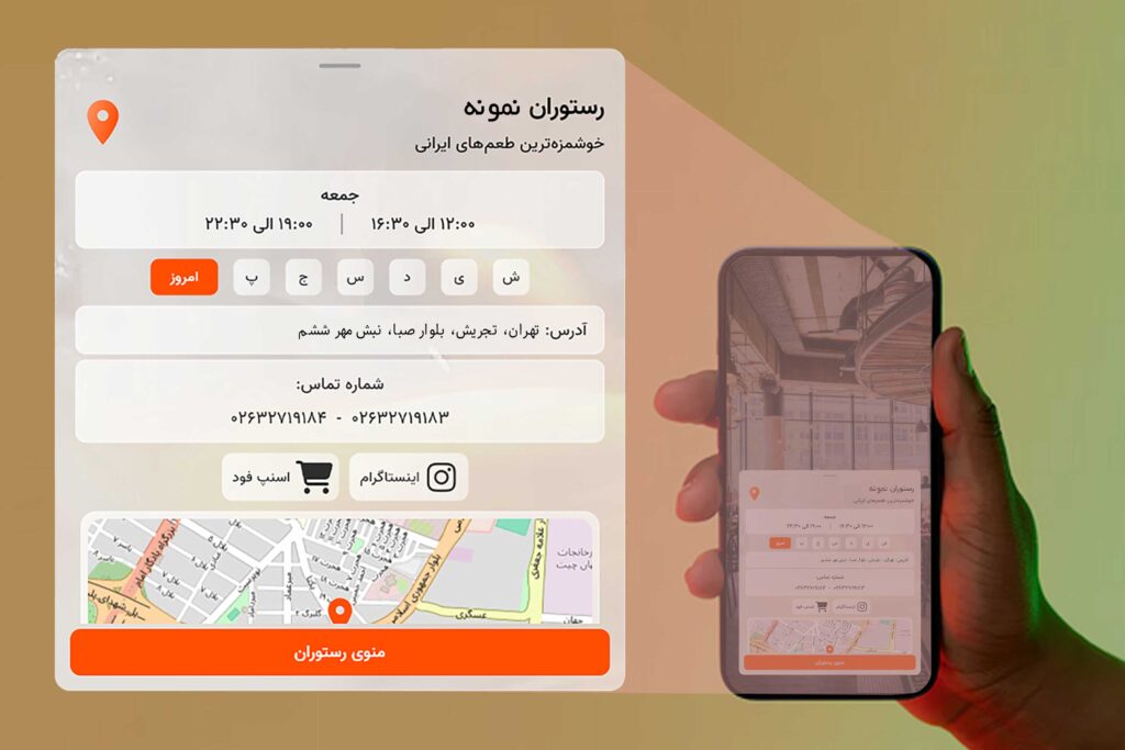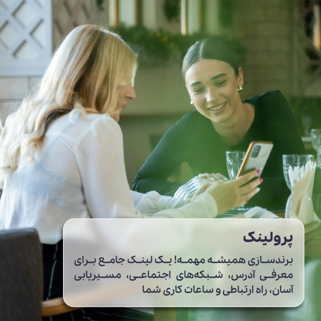یک لینک حرفهای و جامع برای معرفی تمام مشخصات برند شما؛ آدرس، شماره تماس، ساعات کاری، لینکهای فضای مجازی و مسیریابی با گوگل مپ، ویز، بلد، نشان